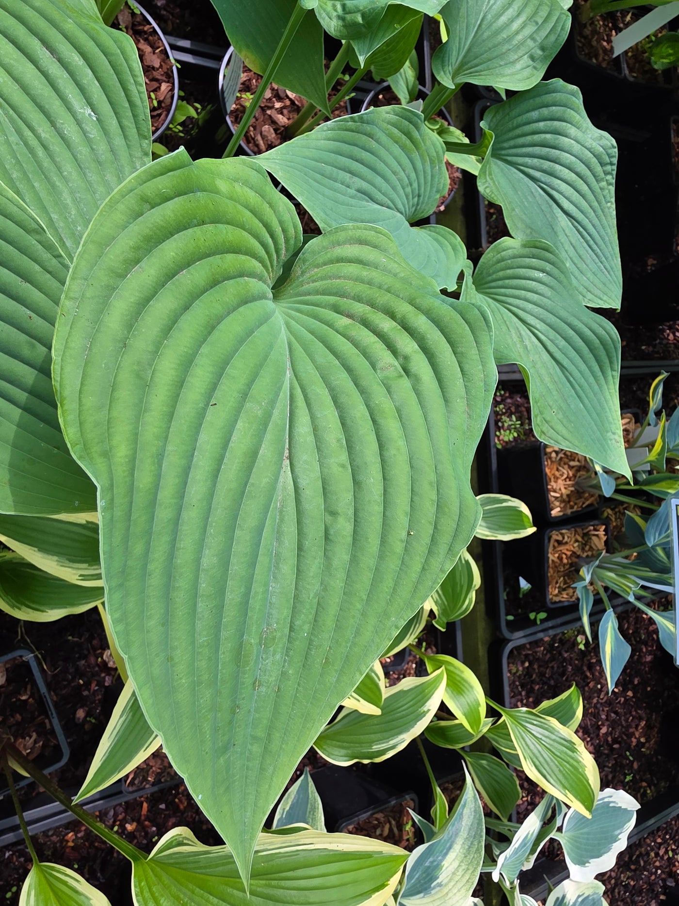 Hosta 'Frank Lloyd Wright' has large steely-blue leaves on thick upright petioles, it produces an impressive display.
