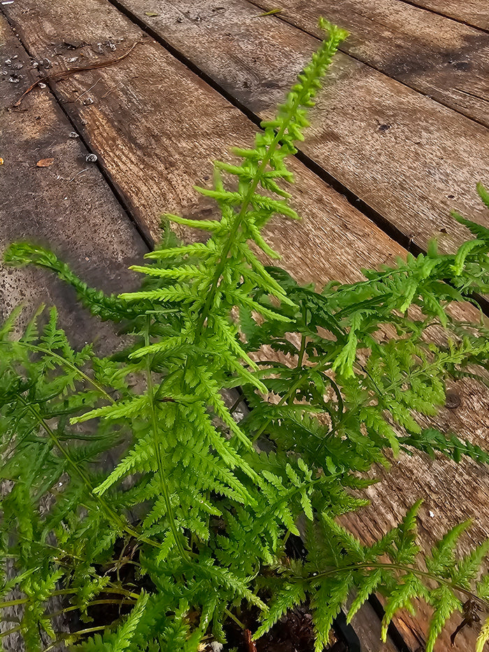{"id":8215888691446,"title":"Athyrium filix-femina 'Victoriae' 1 ltr","handle":"athyrium-filix-femina-victoriae-1","description":"\u003cp\u003eAlso known as the northern lady fern. This elegant female fern has delicate, bright green fronds with unusual crested, alternatively arranged pinnae. Often referred to as the Queen of ferns, possibly named after Queen Victoria. A very regal deciduous fern.\u003c\/p\u003e\n\u003cul\u003e\n\u003cli\u003eHeight: 100cm\u003c\/li\u003e\n\u003cli\u003ePosition: Shade \/ Semi-Shade\u003c\/li\u003e\n\u003cli\u003eSoil: Moist but well drained\u003c\/li\u003e\n\u003cli\u003eDeciduous\u003c\/li\u003e\n\u003cli\u003eHardy\u003c\/li\u003e\n\u003c\/ul\u003e","published_at":"2023-10-26T19:19:37+01:00","created_at":"2023-10-25T20:23:00+01:00","vendor":"New Forest Hostas \u0026 Hemerocallis","type":"","tags":["fern"],"price":1000,"price_min":1000,"price_max":1000,"available":true,"price_varies":false,"compare_at_price":null,"compare_at_price_min":0,"compare_at_price_max":0,"compare_at_price_varies":false,"variants":[{"id":45561077727478,"title":"Default Title","option1":"Default Title","option2":null,"option3":null,"sku":"","requires_shipping":true,"taxable":false,"featured_image":null,"available":true,"name":"Athyrium filix-femina 'Victoriae' 1 ltr","public_title":null,"options":["Default Title"],"price":1000,"weight":0,"compare_at_price":null,"inventory_management":"shopify","barcode":"","requires_selling_plan":false,"selling_plan_allocations":[]}],"images":["\/\/newforesthostas.co.uk\/cdn\/shop\/files\/20231026-150205.jpg?v=1744571168","\/\/newforesthostas.co.uk\/cdn\/shop\/files\/20231026-150142.jpg?v=1744571168","\/\/newforesthostas.co.uk\/cdn\/shop\/files\/20231026-150151.jpg?v=1739823355"],"featured_image":"\/\/newforesthostas.co.uk\/cdn\/shop\/files\/20231026-150205.jpg?v=1744571168","options":["Title"],"media":[{"alt":null,"id":32069882872054,"position":1,"preview_image":{"aspect_ratio":0.75,"height":4000,"width":3000,"src":"\/\/newforesthostas.co.uk\/cdn\/shop\/files\/20231026-150205.jpg?v=1744571168"},"aspect_ratio":0.75,"height":4000,"media_type":"image","src":"\/\/newforesthostas.co.uk\/cdn\/shop\/files\/20231026-150205.jpg?v=1744571168","width":3000},{"alt":null,"id":32069882806518,"position":2,"preview_image":{"aspect_ratio":0.75,"height":4000,"width":3000,"src":"\/\/newforesthostas.co.uk\/cdn\/shop\/files\/20231026-150142.jpg?v=1744571168"},"aspect_ratio":0.75,"height":4000,"media_type":"image","src":"\/\/newforesthostas.co.uk\/cdn\/shop\/files\/20231026-150142.jpg?v=1744571168","width":3000},{"alt":null,"id":32069882839286,"position":3,"preview_image":{"aspect_ratio":0.75,"height":4000,"width":3000,"src":"\/\/newforesthostas.co.uk\/cdn\/shop\/files\/20231026-150151.jpg?v=1739823355"},"aspect_ratio":0.75,"height":4000,"media_type":"image","src":"\/\/newforesthostas.co.uk\/cdn\/shop\/files\/20231026-150151.jpg?v=1739823355","width":3000}],"requires_selling_plan":false,"selling_plan_groups":[],"content":"\u003cp\u003eAlso known as the northern lady fern. This elegant female fern has delicate, bright green fronds with unusual crested, alternatively arranged pinnae. Often referred to as the Queen of ferns, possibly named after Queen Victoria. A very regal deciduous fern.\u003c\/p\u003e\n\u003cul\u003e\n\u003cli\u003eHeight: 100cm\u003c\/li\u003e\n\u003cli\u003ePosition: Shade \/ Semi-Shade\u003c\/li\u003e\n\u003cli\u003eSoil: Moist but well drained\u003c\/li\u003e\n\u003cli\u003eDeciduous\u003c\/li\u003e\n\u003cli\u003eHardy\u003c\/li\u003e\n\u003c\/ul\u003e"}